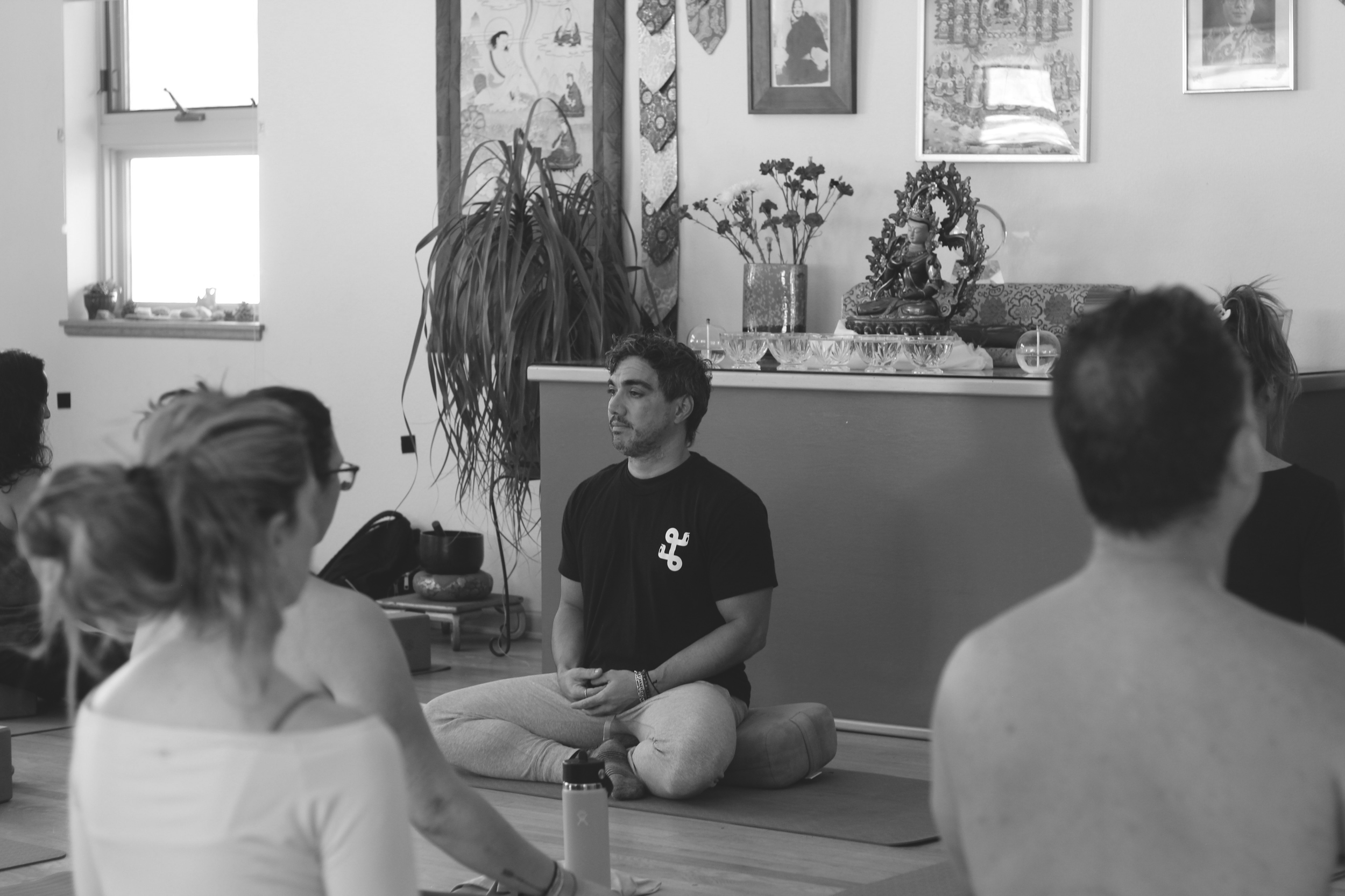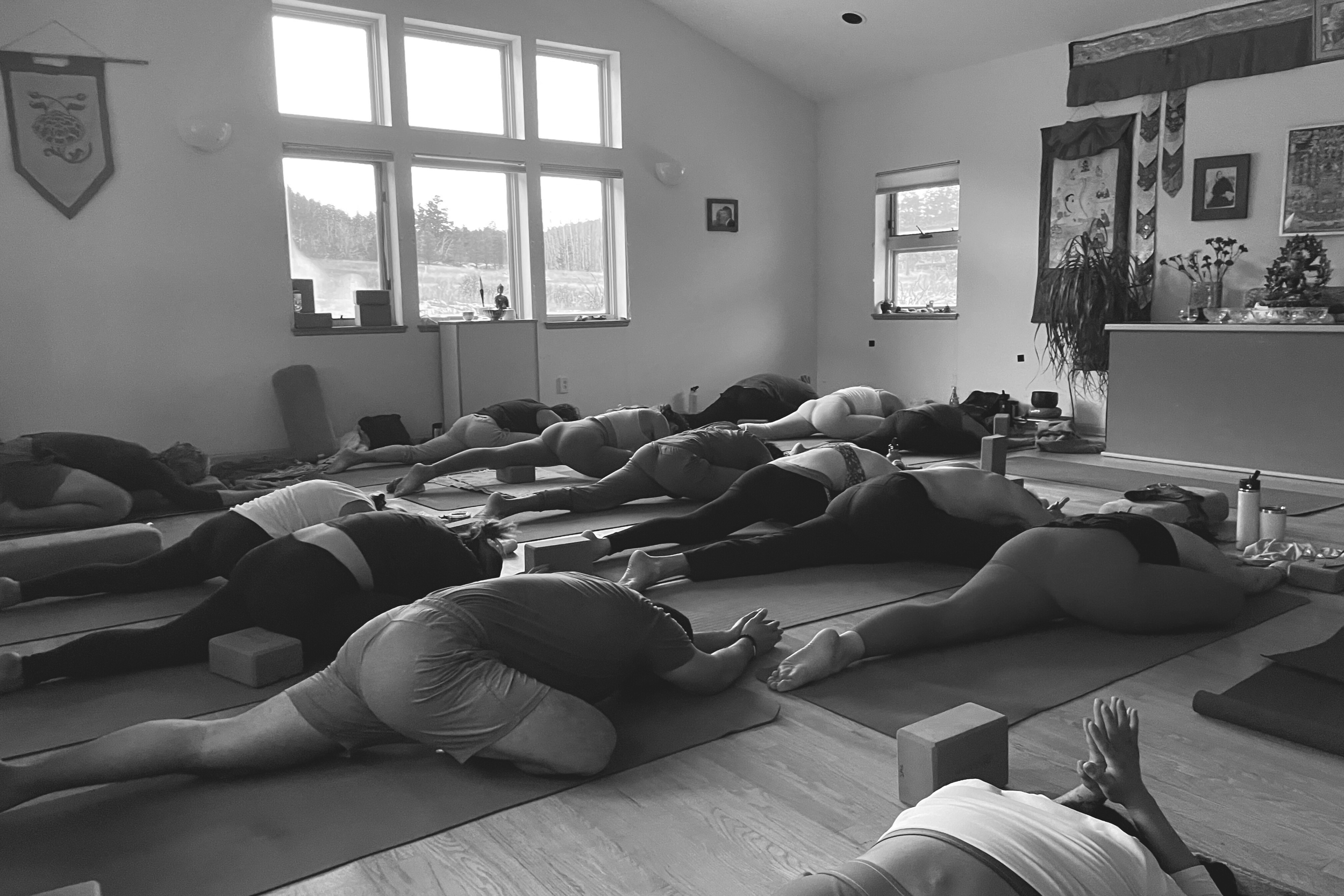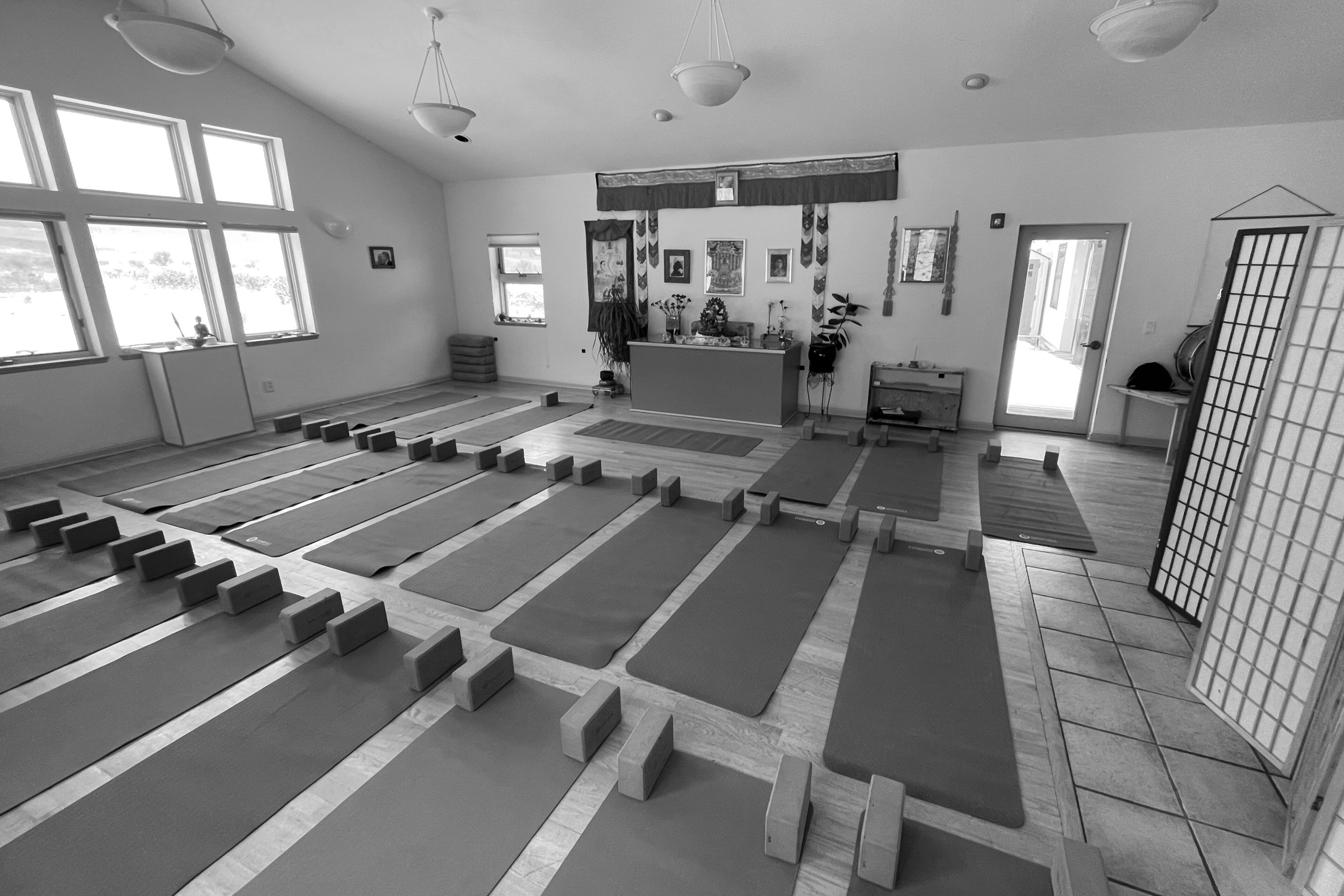 In the lodge there are two separate practice rooms. One is committed to meditation and breathwork. The other is committed to yoga posture/asana sessions.